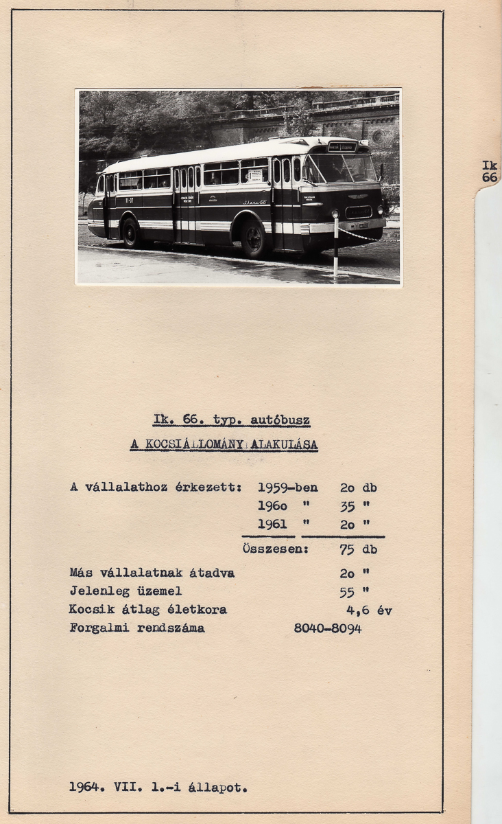 „A fővárosi tömegközlekedésben 1955-ben megjelent az Ikarus 66, az új, farmotoros típus, a nagy reménység. Kialakításakor elsősorban a fővárosi alkalmazhatóság lehetőségeit vették számításba. Az előzetes felmérésekből az tűnt ki, hogy a Fővárosi Autóbuszüzem utasforgalmi igénye kb. száz ülő és álló utast szállító járművek gyártását követeli meg.”